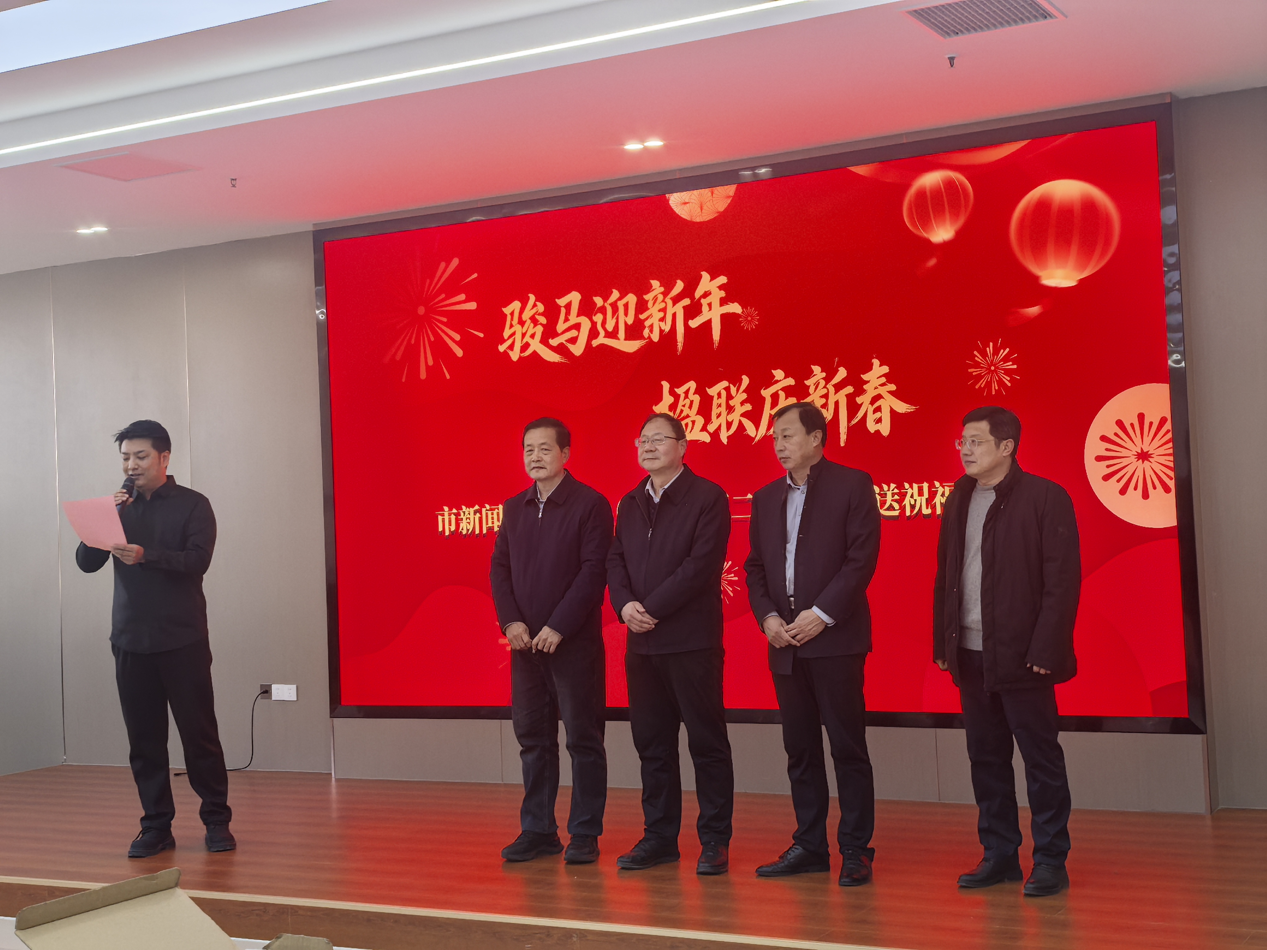 为深入践行中心(集团)“四心文化”,营造欢乐祥和的新春氛围,2月11日下午,市新闻传媒中心(集团)在三楼电视会场成功举办“骏马迎新年 楹联庆新春”第二届写春联送祝福活动。市新闻传媒中心主任,传媒集团党委书记、董事长赵敬源,滨州传媒集团党委副书记、总经理刘电辉,市新闻传媒中心副主任李志武、毛立东出席本次活动,与现场员工共迎新春、共话美好,为活动增添了浓厚的节日氛围。