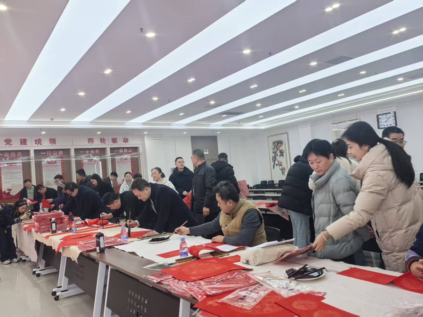 现场员工热情高涨,或驻足欣赏书法创作的灵动过程,或挑选心仪的春联,不时与书法爱好者交流探讨,欢声笑语不断。活动设置错时领取通道,确保到场的每一位员工都能领到专属新春祝福,切实感受到中心(集团)大家庭的温暖与关怀,让马年新春的喜气浸润每一个角落。