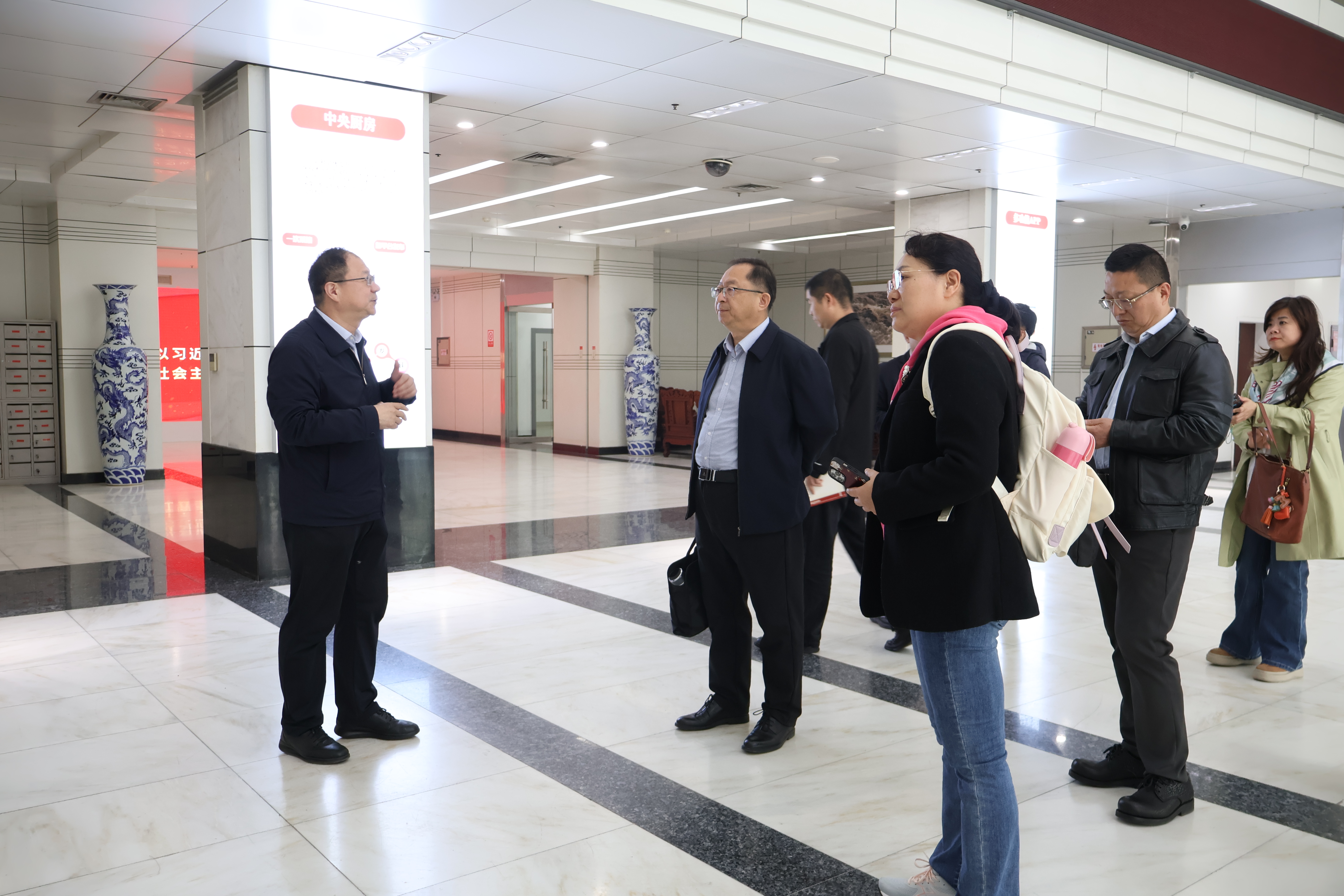 4月14日上午,临沂市融媒体中心副主任孙文生一行来中心(集团)考察调研,中心主任,集团党委书记、董事长赵敬源陪同调研。
